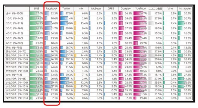 赤線で囲った、Facebookのユーザー割合を見てみましょう。