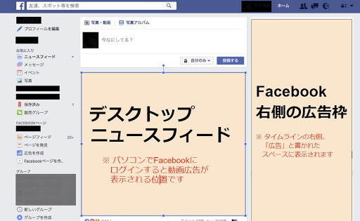 デスクトップ新着情報フィードとFacebook右側の広告枠